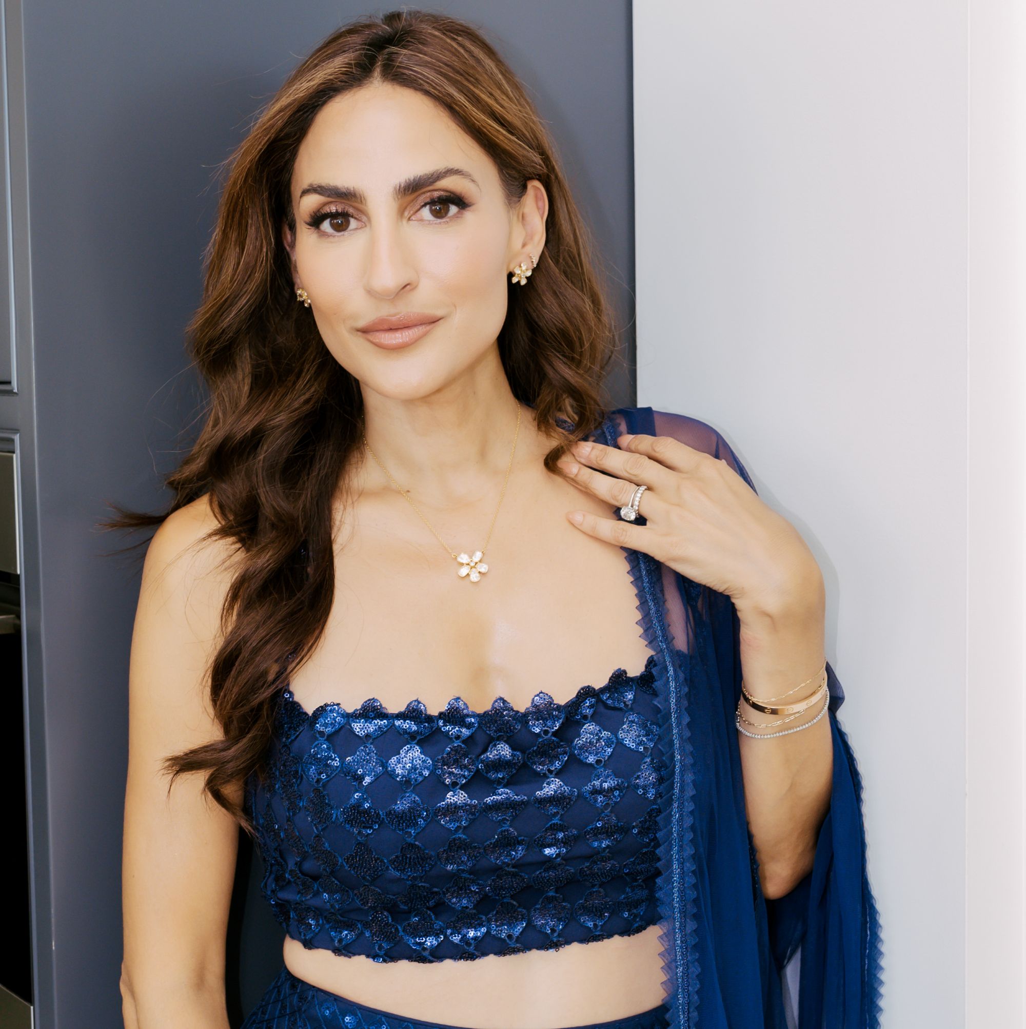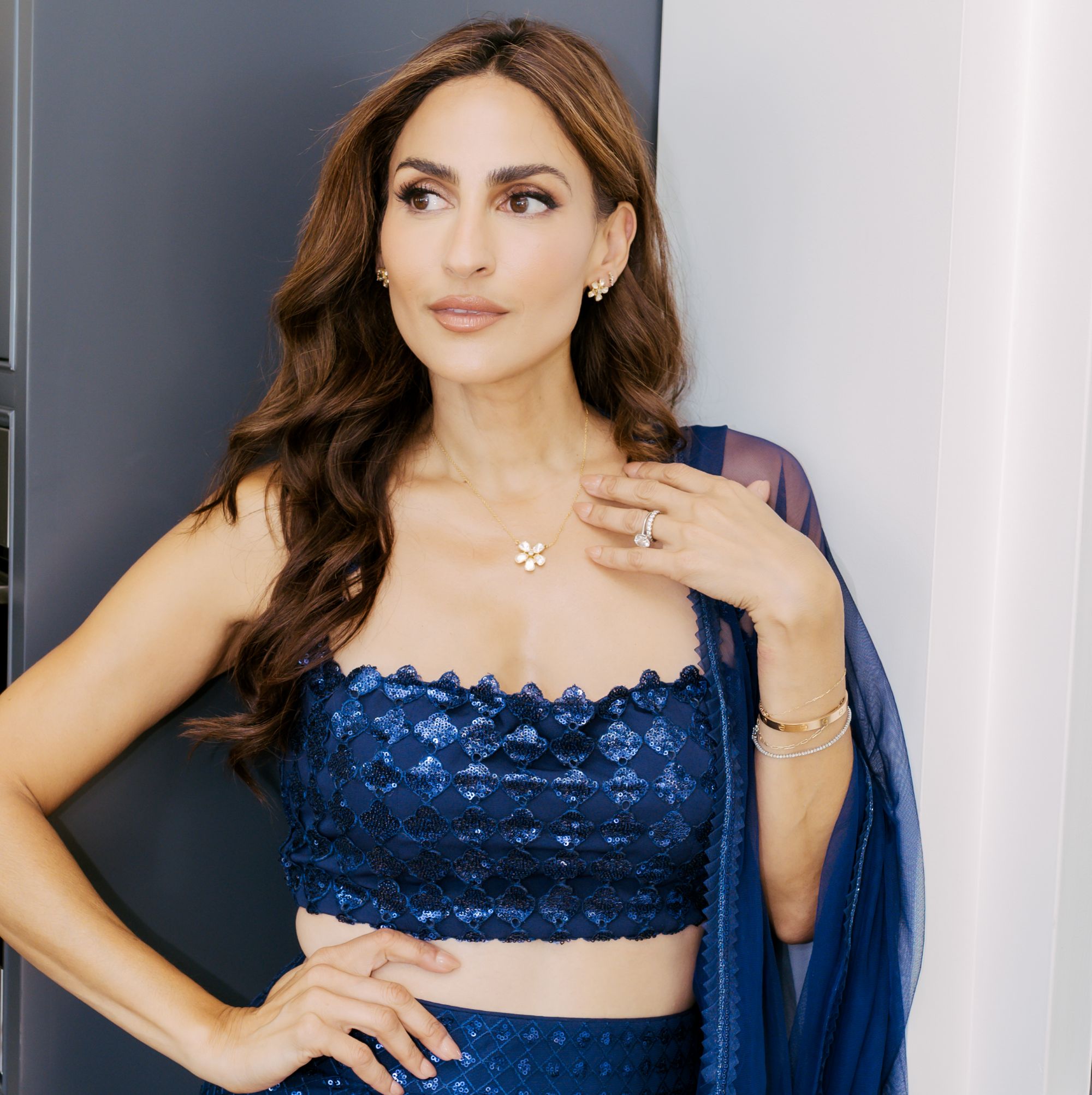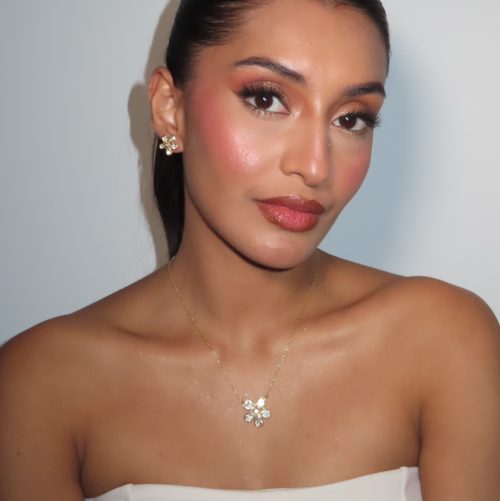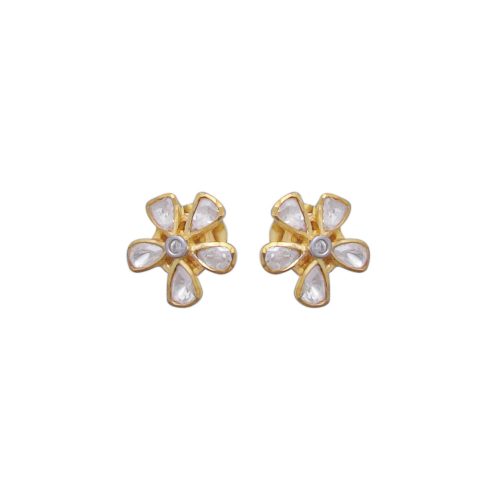A beautiful 925 sterling silver gold plated flower shaped pendant made with high quality mossianite stones inlaid with american diamonds in a 925 sterling silver gold plated chain with matching flower shaped stud earrings