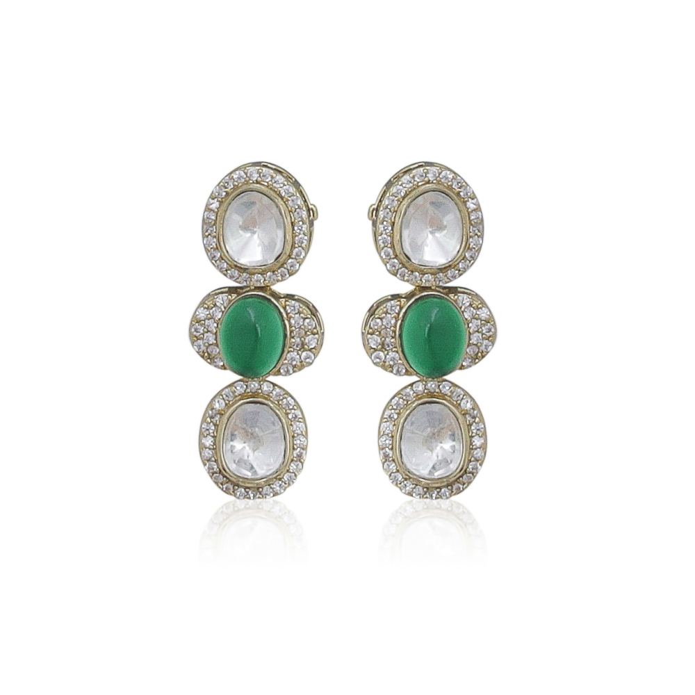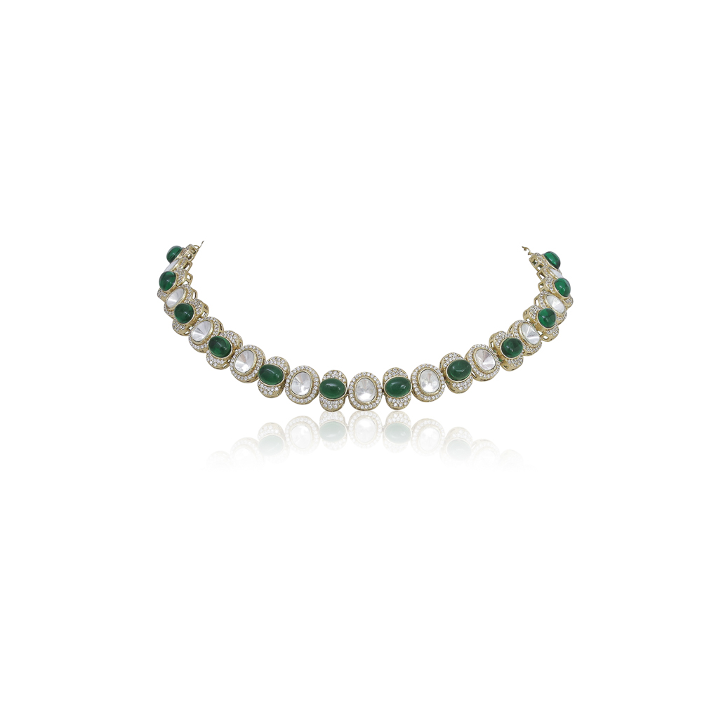 Beautifully handcrafted necklace made with moissanite and green stones inlaid with diamante with matching earrings