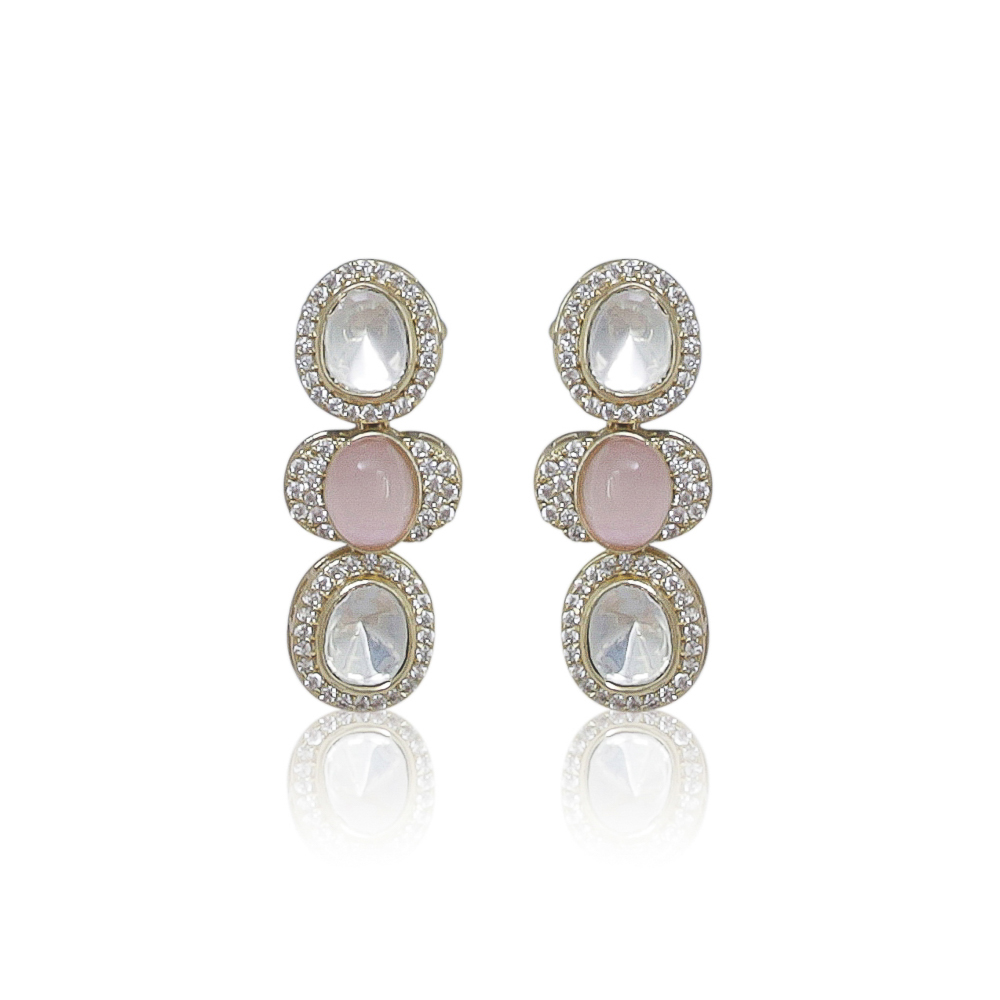 Beautifully handcrafted necklace made with moissanite and light pink stones inlaid with diamante with matching earrings