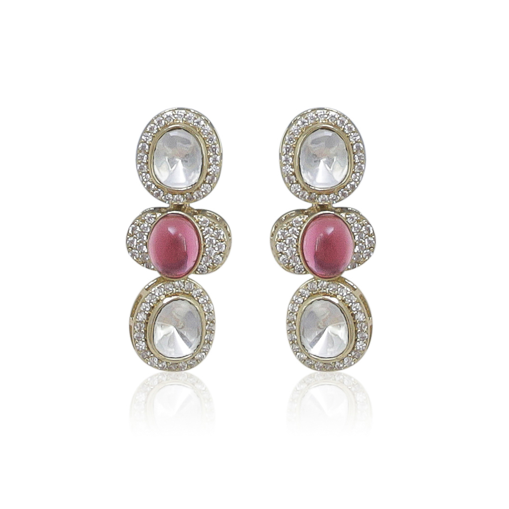 Beautifully handcrafted necklace made with moissanite and pink stones inlaid with diamante with matching earrings
