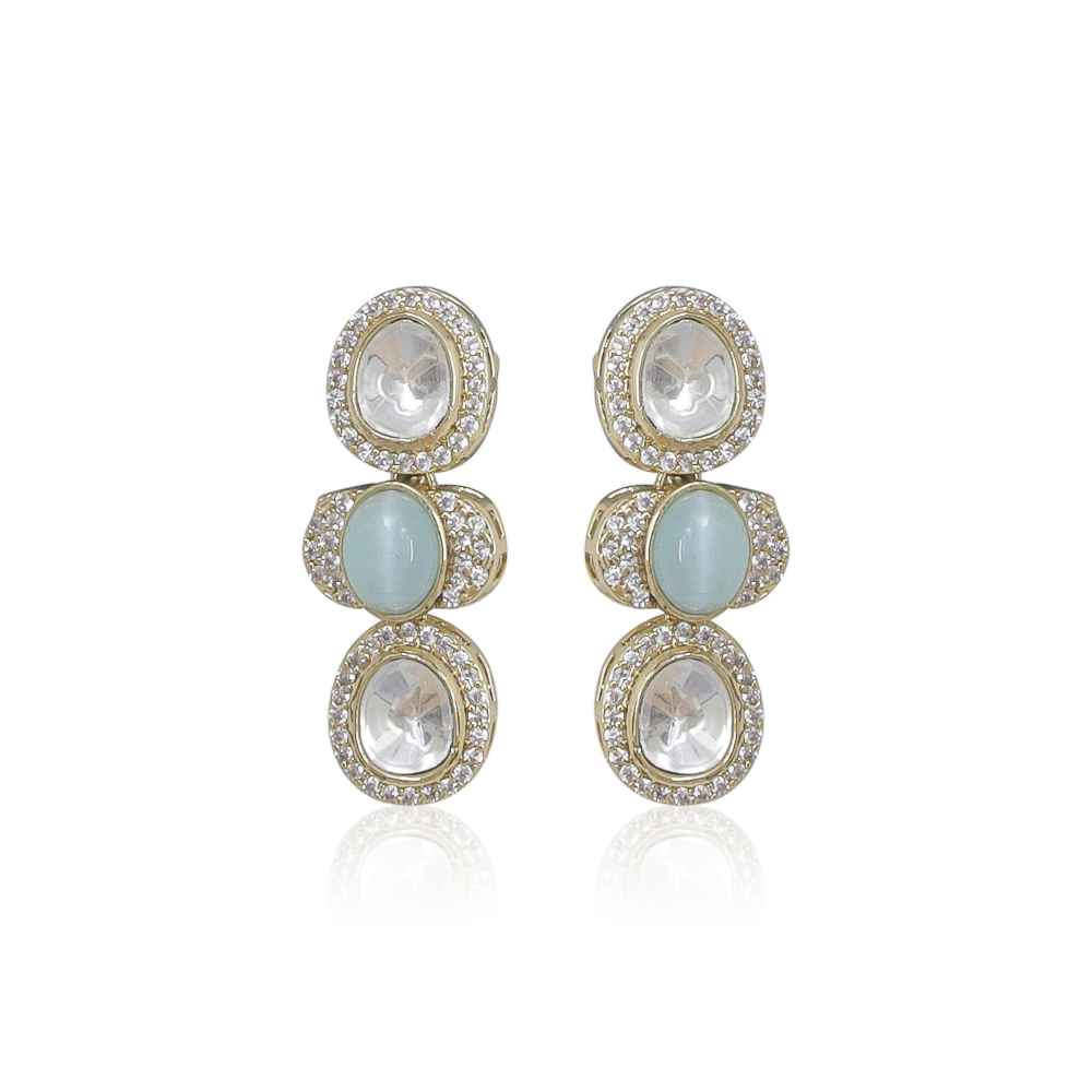 Beautifully handcrafted necklace made with moissanite and teal stones inlaid with diamante with matching earrings
