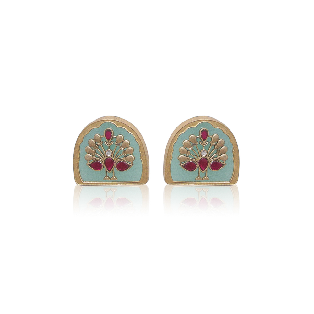 Beautifully handcrafted necklace made with moissanite, aqua mint green and pink stones with matching stud style statement earrings