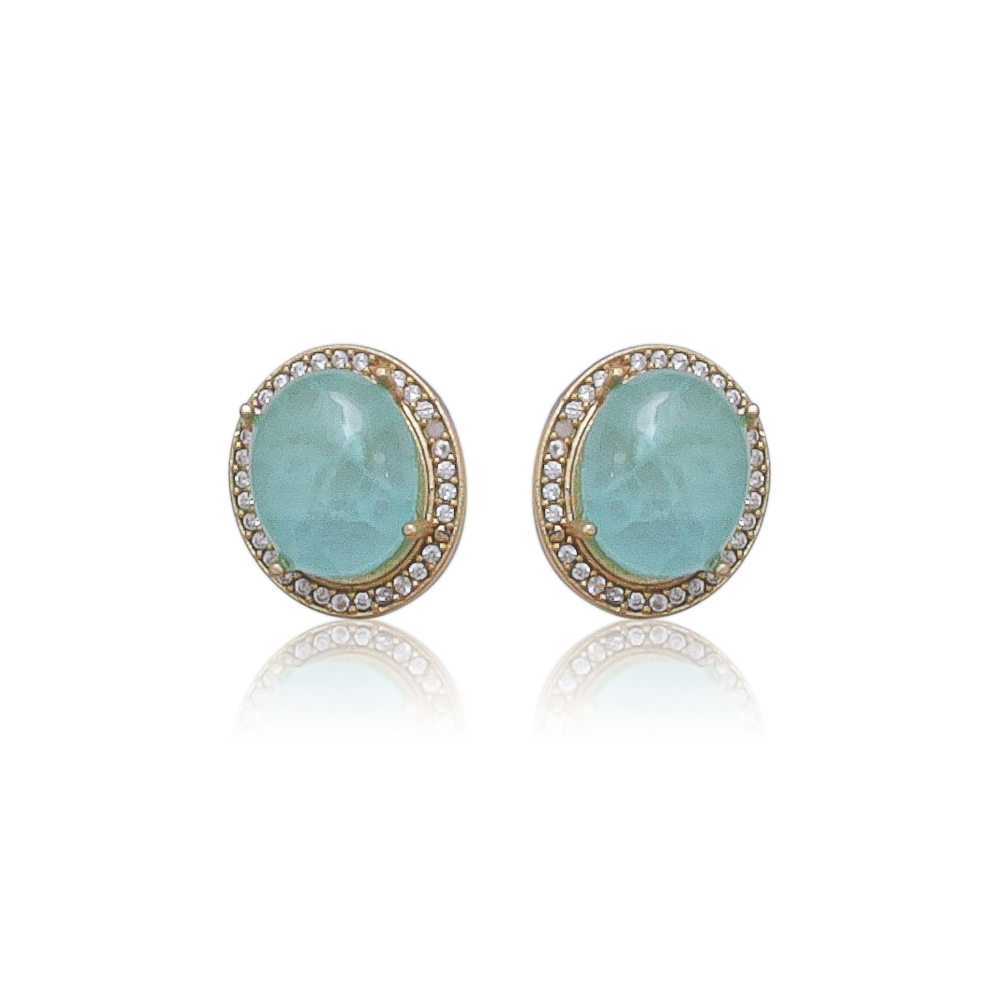 Beautifully handcrafted necklace made with pink and aqua mint green stones and stunning gold ball drops with matching stud earrings