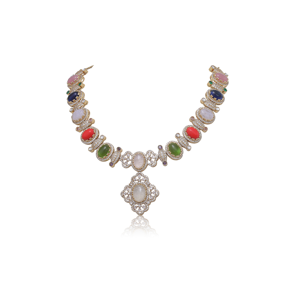 Gold finish multi-stone necklace set