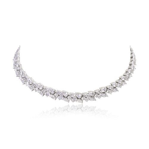 A beautiful 925 sterling silver gold plated necklace made with natural hand carved pink stones and high quality mossianite stones inlaid with american diamonds with matching earrings