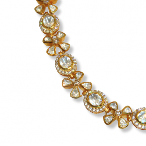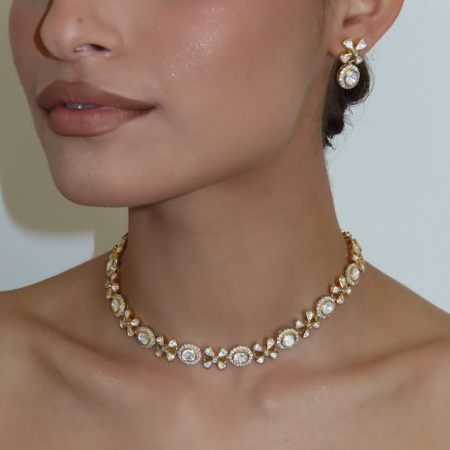 A beautiful 925 sterling silver gold plated necklace made with high quality mossianite stones inlaid with american diamonds with matching earrings