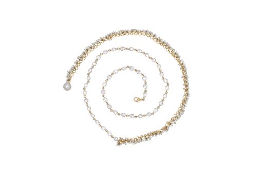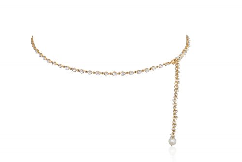 A classic waist belt/chain made with high quality polki stones with stunning pearl detailing – perfect for both classic and contemporary looks. One size fits all