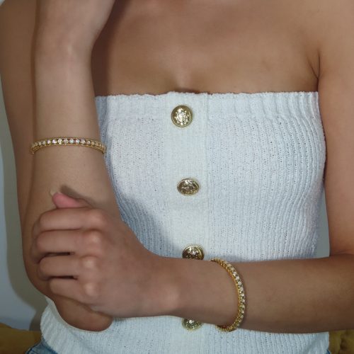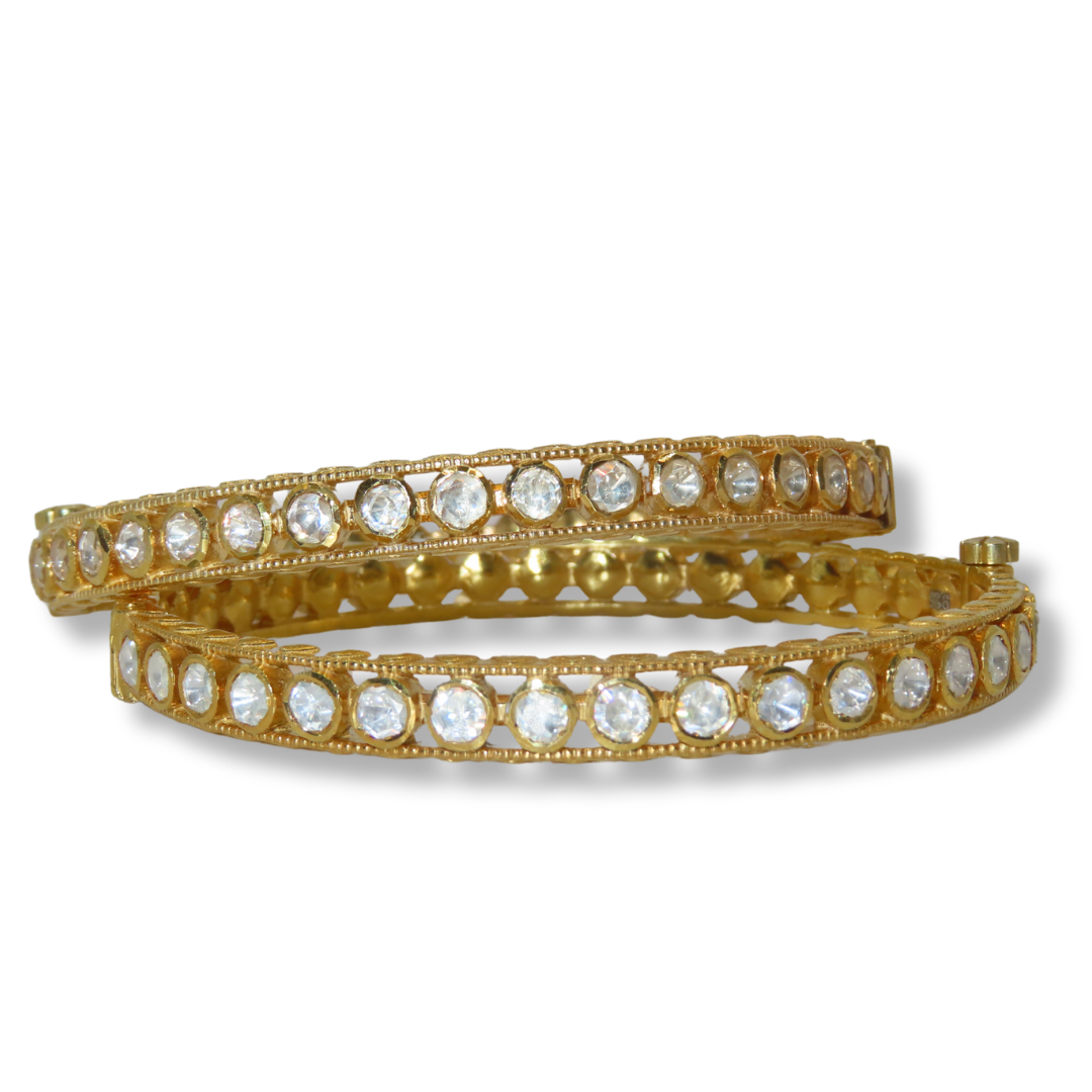 A beautiful pair of 925 sterling silver gold plated bangles made with high quality mossianite stones. Available in size small 2.4 that fits small to medium sizes 2.4 and 2.6 too as it open from the middle