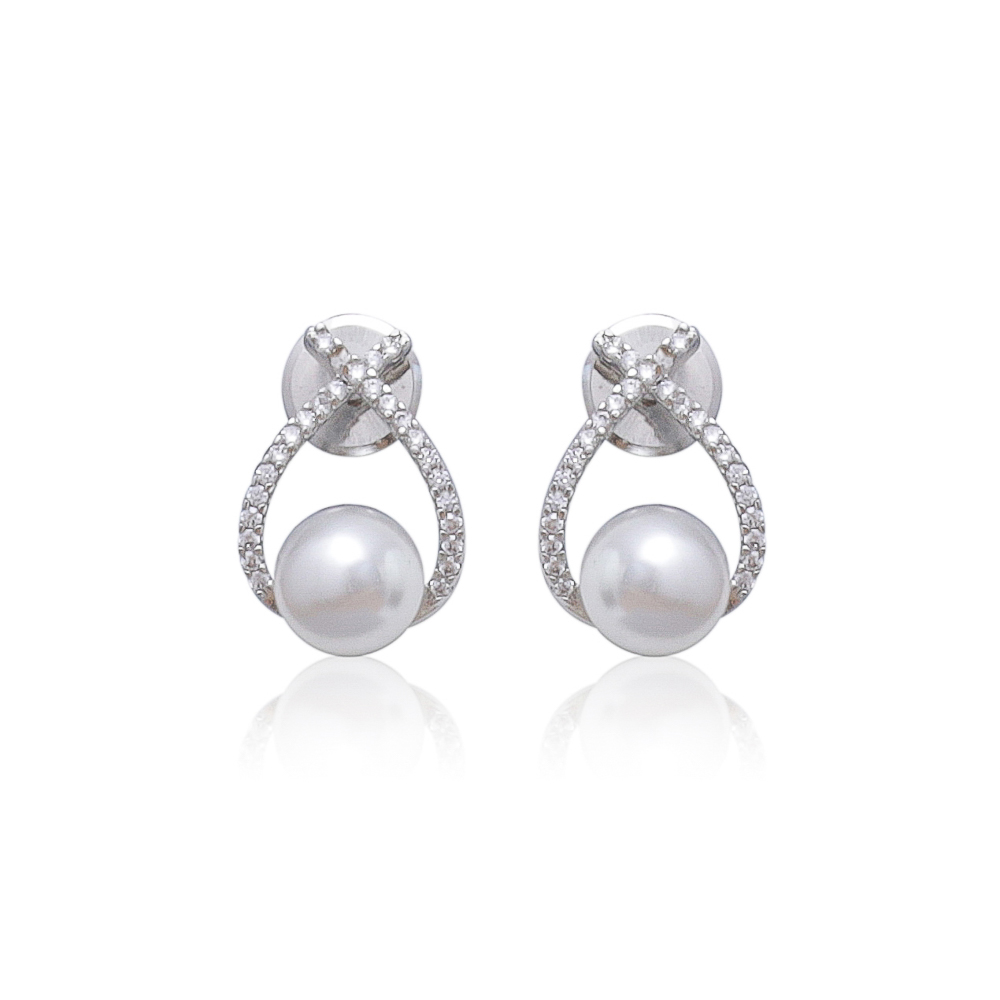 Silver toned Cubic Zirconia stud style earrings with pearls