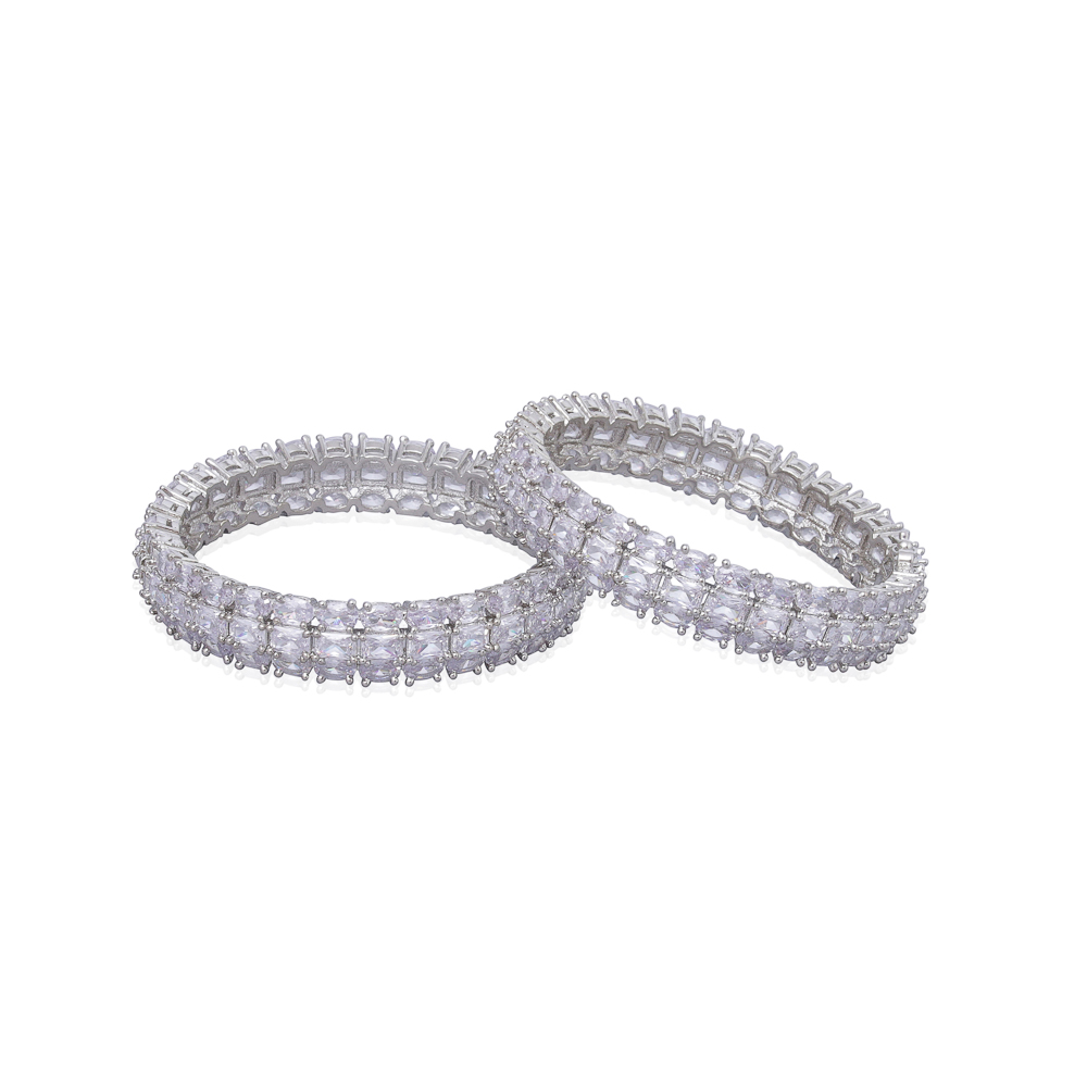 A pair of high quality silver toned bangles made with clear Cubic Zirconia stones