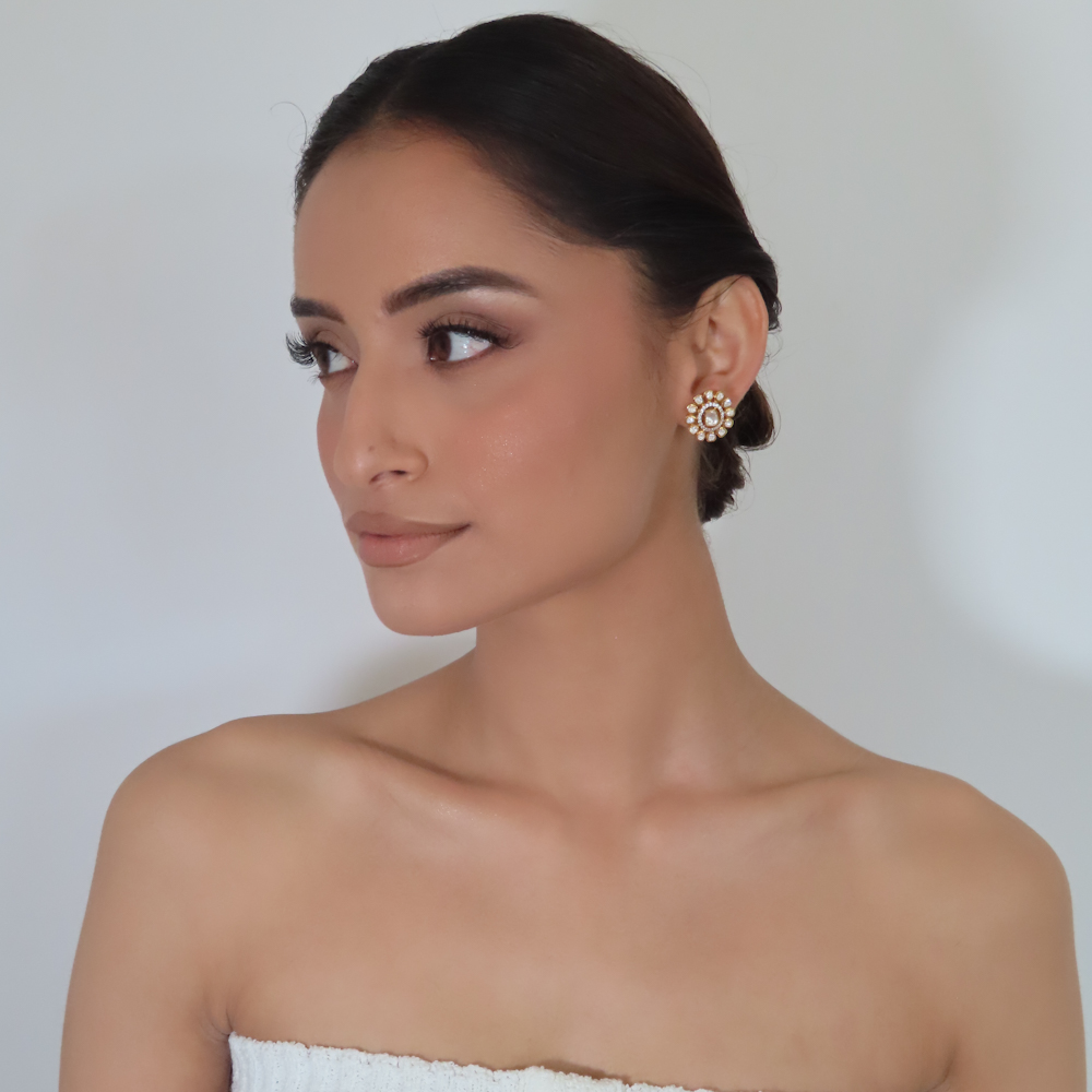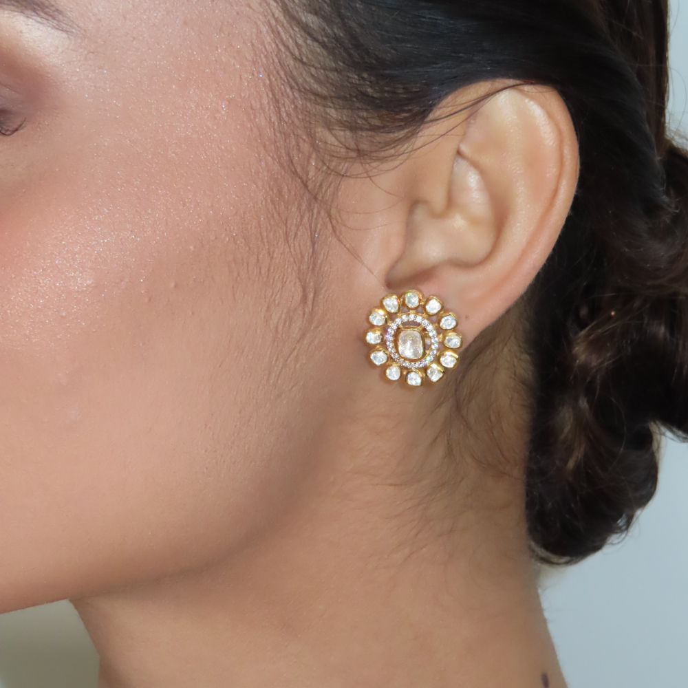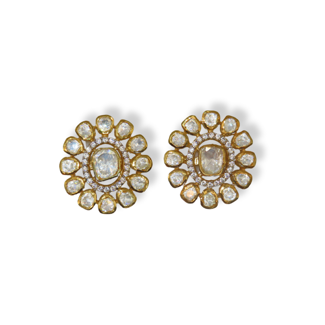 A gorgeous 925 sterling silver gold plated stud style earrings made with high quality moissanite stones