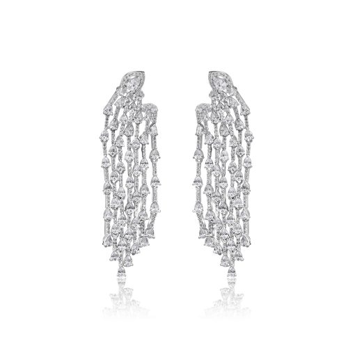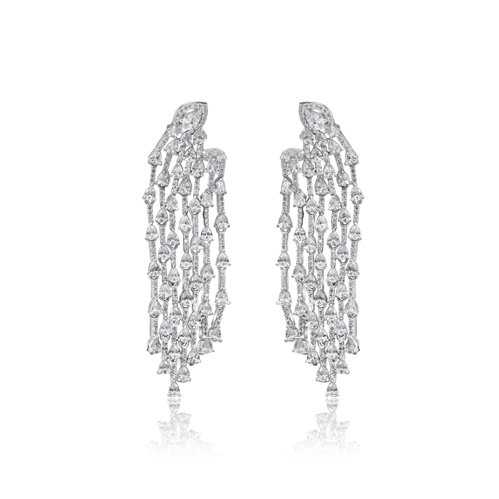 A gorgeous pair of silver toned statement earrings made with clear Cubic Zirconia stones