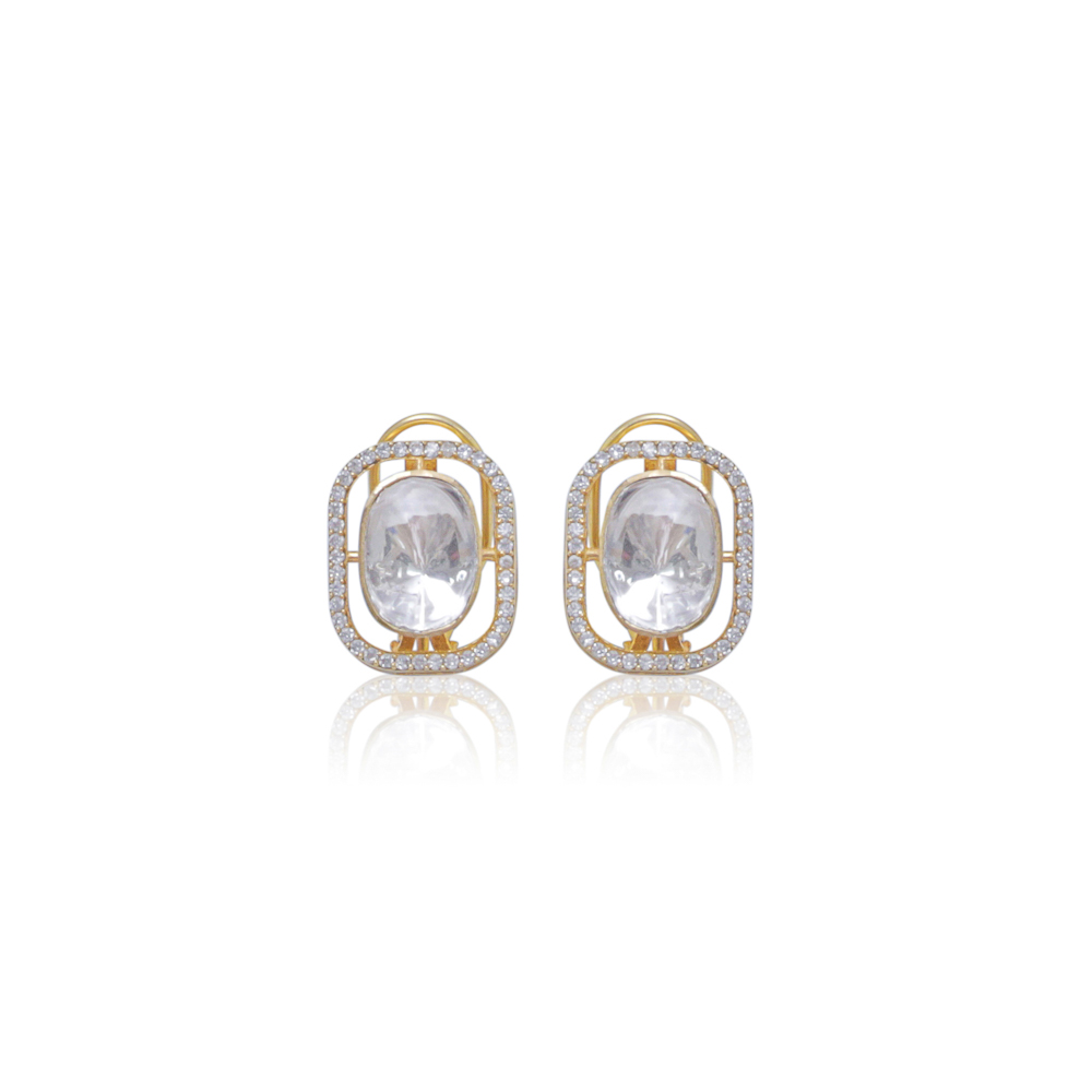 A classic two-layered necklace made with high quality polki stones with matching stud-style earrings – Perfect for occasions when you want your jewellery to look effortlessly real — this set beautifully mimics the look of uncut diamonds and elevates any outfit with its understated sparkle