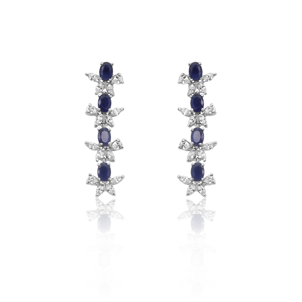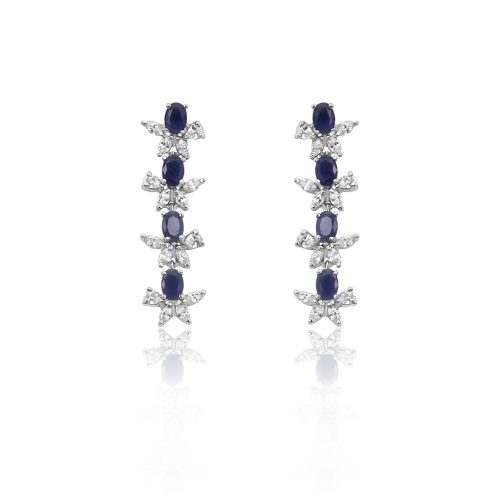 Silver toned necklace with sapphire blue and clear Cubic Zirconia stones with matching earrings