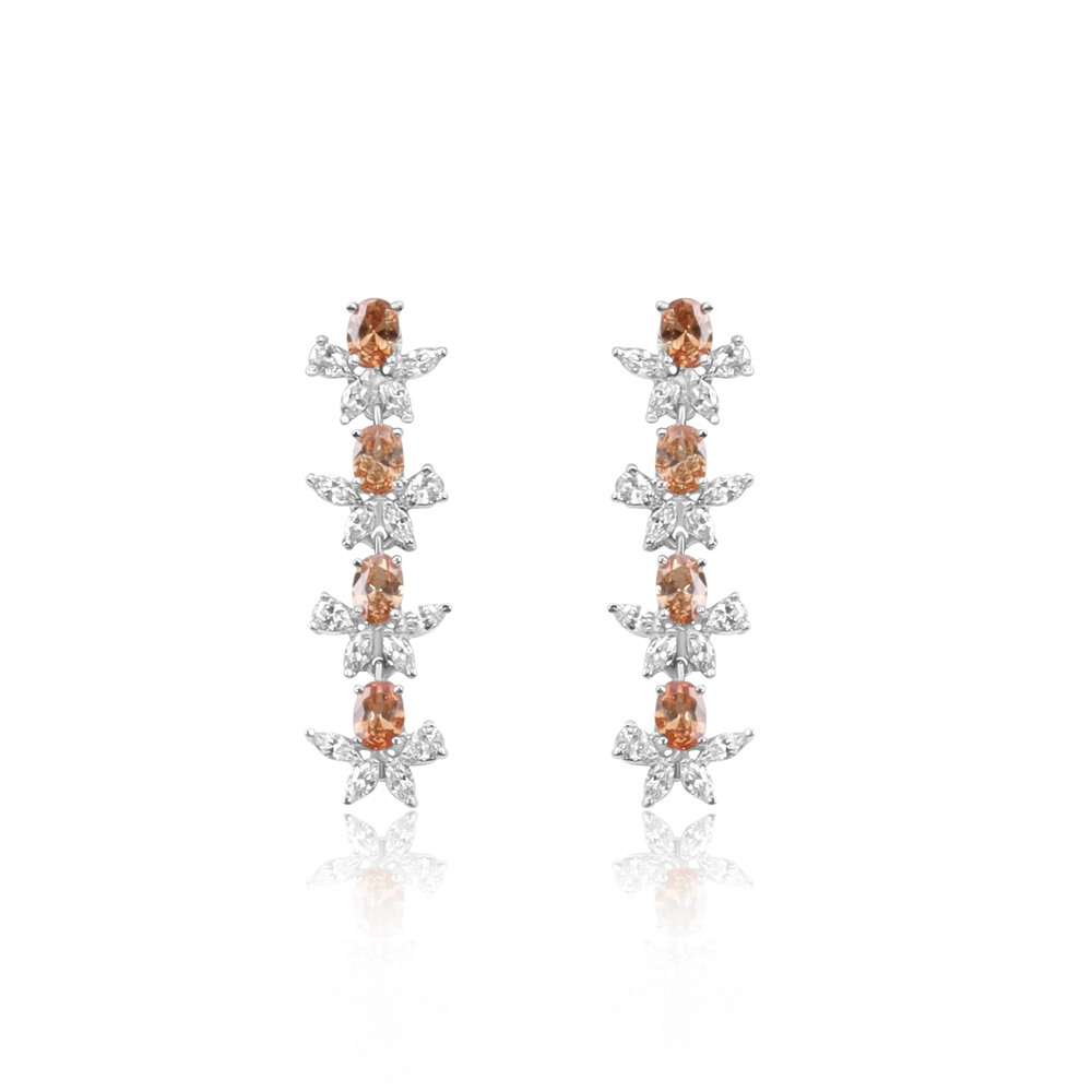 Silver toned necklace with champagne coloured and clear Cubic Zirconia stones with matching earrings
