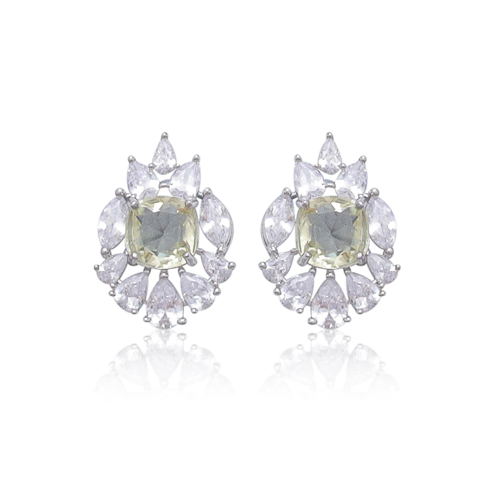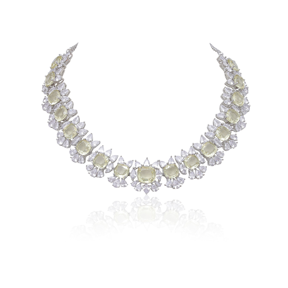 Silver toned Cubic Zirconia necklace with yellow stones with stud style matching elegant earrings