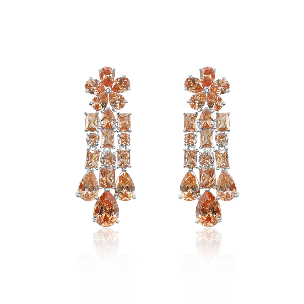 Silver toned necklace with champagne coloured Cubic Zirconia stones with matching statement earrings