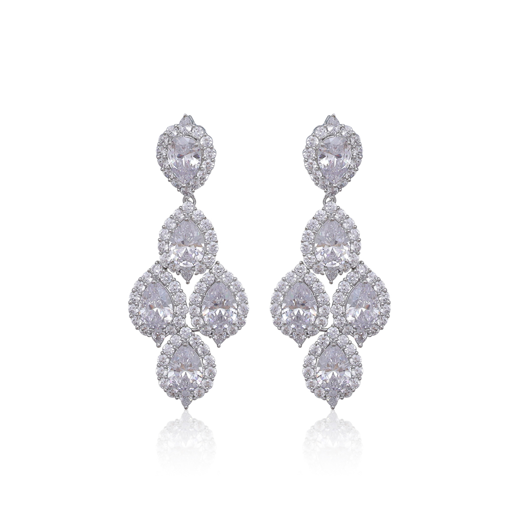A pair of silver toned statement earrings made with clear Cubic Zirconia stones