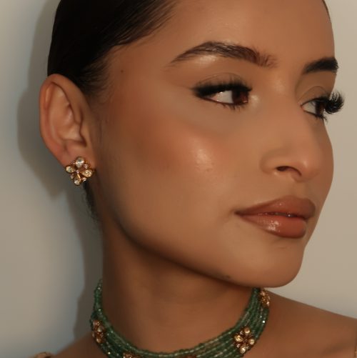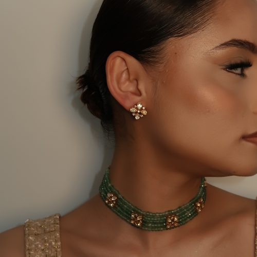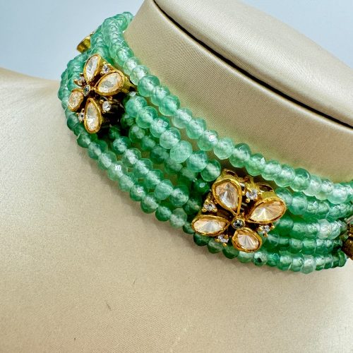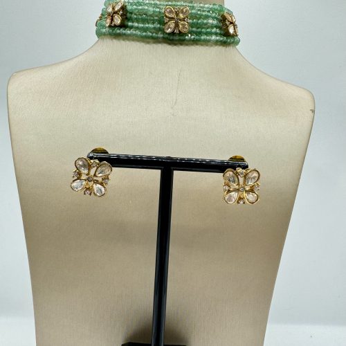 Stunning choker made with mint green beads and moissanite stones with beautiful matching stud earrings